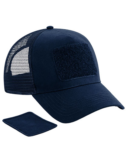 100% katoenen frontpaneel en klep, 100% polyester mesh achterpanelen | Afscheurbaar etiket | 5-panelen design | Voorgebogen klep | Verwisselbare Rip-Strip™-patch ontworpen voor decoratie (ca. 10 x 6,5 cm) | Drukknoopsluiting in retrostijl voor aanpassing van de maat