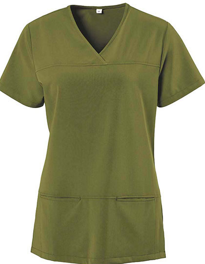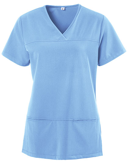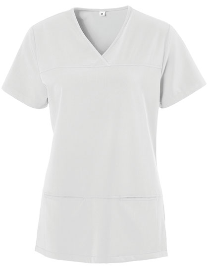 Vrouwenmodel | V-hals | Getailleerd | Zijsplitten | Twee afgebiesde zakken | Voor- en rugpas | Ruglengte bij maat M ca. 71 cm