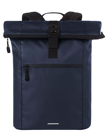 Grote verrijdbare rugzak in koeriersstijl | Hoofdvak met rits en extra gesp | Groot voorvak met ritssluiting | Decoratieve reflecterende print op de voorkant | Platte binnenzak | Airtag-compartiment | Notebookvak, ook toegankelijk via de achterkant | Versterkte basis | Gewatteerd draagsysteem met in hoogte verstelbare borstriem | Heupgordel | Handgreep | Levering zonder inhoud/decoratie