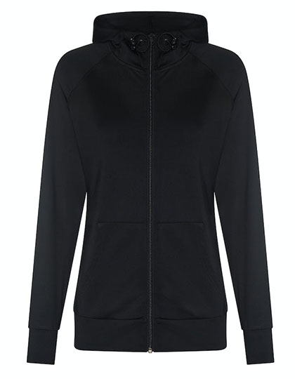 Slim fit | AWDis' eigen gemengde stof met elasthaan dat zorgt voor stretch, comfort en een goede pasvorm. | Vochtafvoerende, sneldrogende stof | Volledige rits aan de voorkant | Contrasterende gemêleerde mouwen | Kangoeroezakje | Afgeronde zoom aan de achterzijde | Verstelbare kap | Opening voor duimgat | Raglanmouwen | Afscheurbaar etiket