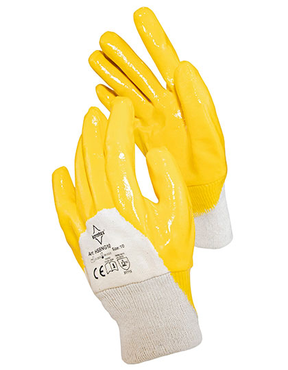 Interlock katoenen handschoenen met royale nitril coating | Gebreide pols voor een goede pasvorm en een algeheel aangenaam gevoel | Nitril coating biedt bescherming tegen chemicaliƫn, oliƫn en oplosmiddelen | Gecertificeerd volgens EN ISO 21420 en EN388