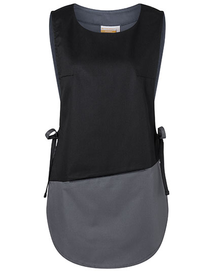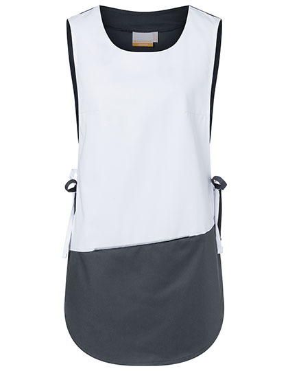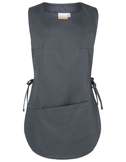 Keperbinding, 215 g/m² | Zeer verfijnd, voorgekrompen, kleurvast, onderhoudsvriendelijk | Overslag schort van gemixte materialen | Verborgen zak | Aan de zijkant vast te binden | Ruglengte voor maat ca. 82 cm | Geschikt voor industrieel wassen | Wasbaar tot 60 °C (antraciet tot 95 °C)