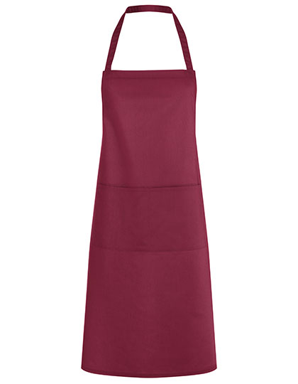 Keperbinding, 215 g/m² | Zeer verfijnd, voorgekrompen, kleurvast, onderhoudsvriendelijk | Bib schort met riempjes van schortstof, met versterkte belastingspunten | Lengte nekband: ca. 60 cm | Opgestikte zak met 2 compartimenten, 40 x 20 cm | Geschikt voor industrieel wassen | Wasbaar tot 95 °C