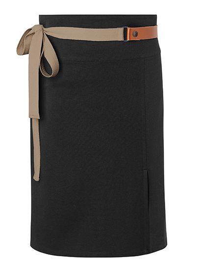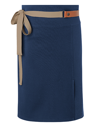 Keperbinding, 215 g/m² | Kleurvast, gemakkelijk te onderhouden, duurzaam | Modern, comfortabel half schort dat duurzaamheid en stijl perfect combineert | Polyester inhoud gemaakt van gerecycleerd plastic | Urban-look taillebanden van echt leder en contrasterende banden | Contrasterende, natuurlijke banden | Alle riemen kunnen makkelijk worden verwijderd of bevestigd met drukknop | Twee opgestikte zakken (18 x 20 cm) op de zijkanten | Split voor meer bewegingsvrijheid