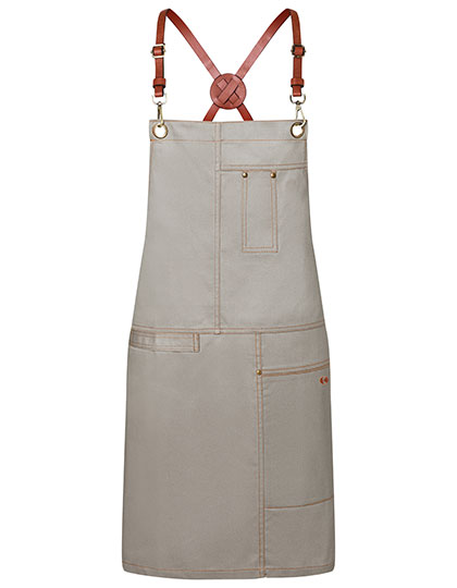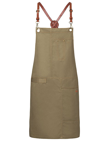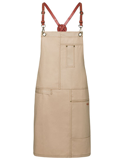 Keperbinding, 273 g/m². | kleurecht | Bib-schort in twill-look met gekruiste bandjes om de nek te ontlasten | Eenvoudig verwijderen en vastzetten van alle riemen met karabijnhaaksluiting | Gespen voor traploos in lengte verstelbaar | Extra tailleband om de breedte te regelen, zorgt voor een stevige pasvorm | Gebronsde klinknagels en contrasterende stiksels aan de bovenkant | Functionele lederen riemen | Praktische stoffen lus aan de rechterkant voor het bevestigen van een holster of keukenhanddoek | Linker zijvak (16 x 24 cm) en pennenvak op borsthoogte | Wasbaar tot 60 °C