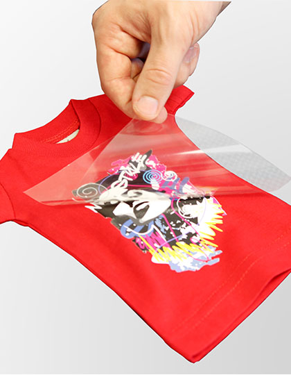 Technische gegevens: Drager: PET-folie, transparant / lijm: acrylaat / kleefkracht [N/cm]: 0,60 +/- 10% / dikte [mm]: 0,12 +/- 10% / liner: PP-folie, wit, met siliconencoating | Transparante PET-folie, gecoat met een uitgeharde acrylaatlijm die goed bestand is tegen temperature, veroudering en uv. | De lijm kan zonder resten worden verwijderd, zelfs na langdurig gebruik. | Geschikt voor gebruik als overdrachtsfolie voor het opdrukken m.b.v. warmteoverdracht met hittebestendige materialen, zoals het opdrukken van een ontwerp op flexfolie op textiel.