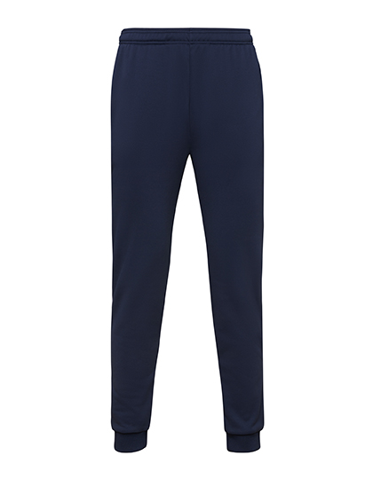 Trainingsbroek met elastische tailleband en verstelbaar trekkoord | Geborstelde interlock aan de binnenkant | Zijzakken met rits | Contrasterende strepen in wit | Zoom met manchetten met 1x1 boordsteek
