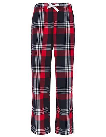 100% katoenen flanel twill weefsel | Geweven loungebroek met Schotse ruitprint en effen zoom | Volledig elastische taille met contrasterende mock trekkoord | Afscheurbaar etiket