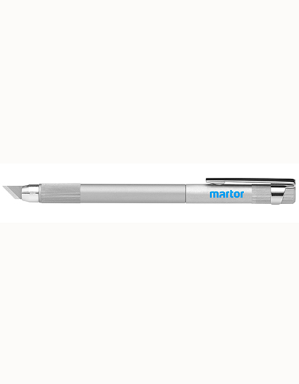 Aluminium handgreep | Gemakkelijk en handig | Iets verhoogde groeven aan de voorkant van de handgreep | Dubbel snijmes, aan de ene kant volledig schuin, aan de andere kant loopt het in een spitse punt naar het midden | Clip voor bevestiging | Intrekbaar mes