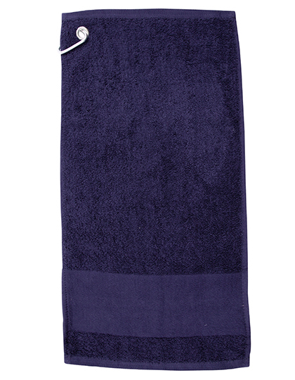Golfhanddoek met bedrukbare rand van 10 cm | Metalen klinknagel in hoek van bovenrand
