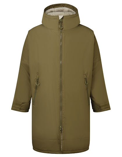 Unisex | Oversized | Doorlopende tweeweg plastic ritssluiting met gemakkelijk te bedienen schuifknopen | Kinbescherming | Oversized pasvorm | Ventilatieopeningen aan de zijkant | Verstelbare manchetten met klittenbandsluiting | Zijzakken met ritssluiting | Binnenzak met ritssluiting aan de linkerkant | Binnenzak met opstikzak aan de rechterkant | Capuchon met 3 panelen | Lus aan de achterkant van de jas om de badjas op te hangen | Verlengde achterkant | Toegang tot borduursel aan de achterkant, borstgebied is ook hier toegankelijk | Waterdichte buitenlaag met getapete naden | Sherpa fleece binnenkant | Rebrandle opbergzak met dubbele trekkoorden