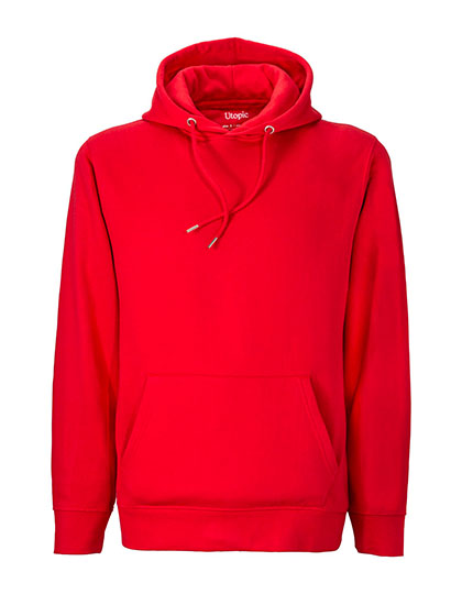 100% geregenereerde stof | Gerecycleerd katoen en polyester | Uniseks | Binnenkant uit fleece | Dubbellaagse kap | Metalen oogjes | Trekkoorden met metalen uiteinden | Grote buidelzak | Geribde manchetten en onderboord | Constructie van zijnaden