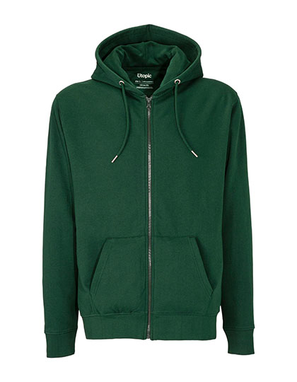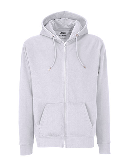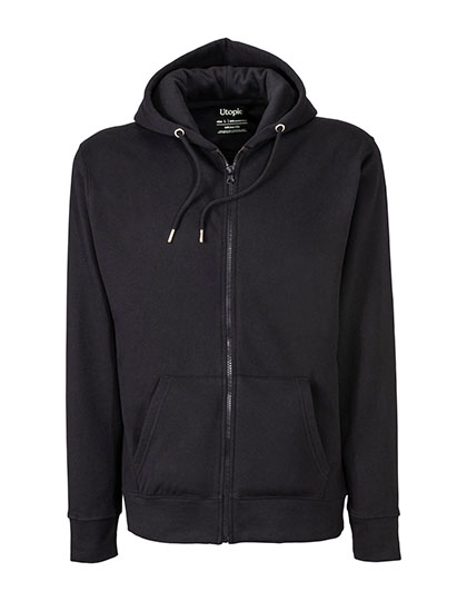 100% geregenereerde stof | Gerecycleerd katoen en polyester | Uniseks | Met rits | Fleece binnenkant | Dubbellaagse kap | Metalen oogjes | Trekkoorden met metalen uiteinden | Grote buidelzak | Geribde manchetten en onderboord | Constructie van zijnaden