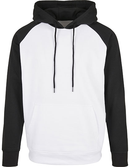 Contrasterende raglanmouwen | Verstelbare kap | Ruime kangoeroezak | Geribbelde bies | Alleen maatlabel, voor eenvoudige rebranding